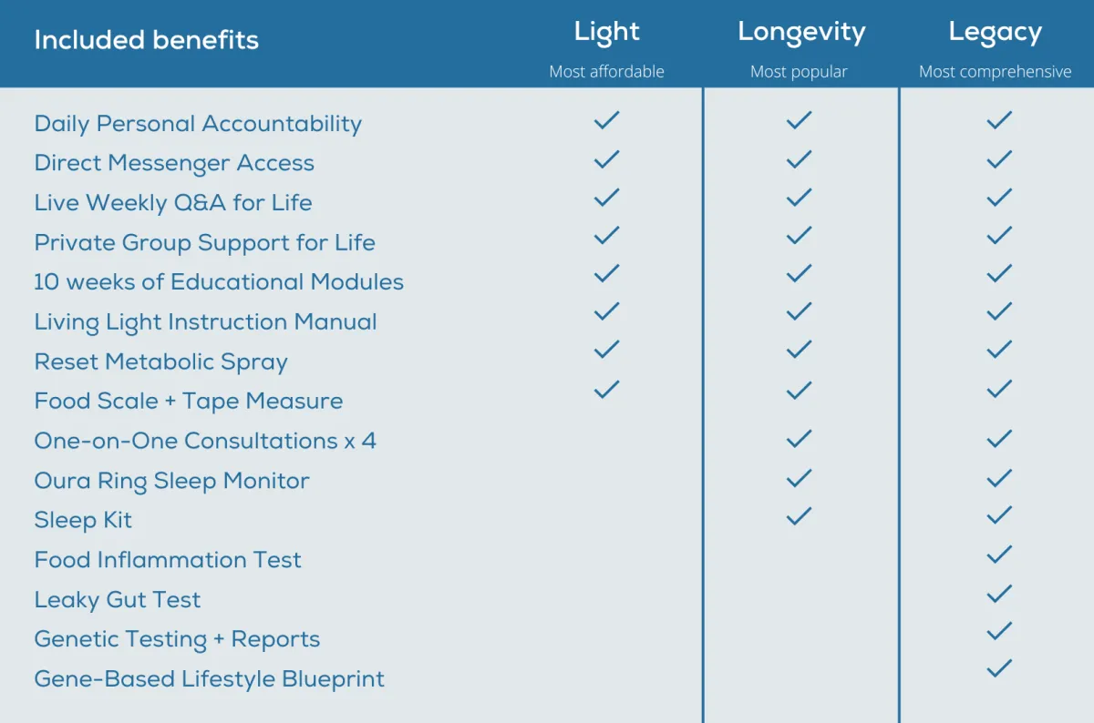 The Living Light Reset Program™ is a metabolic-optimization and lifestyle-focused program designed to help people with unresolved weight loss and inflammatory issues.